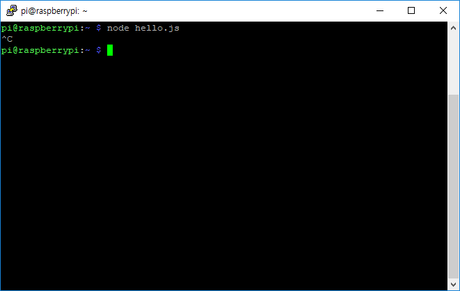 터미널에서 Ctrl + c 하면 hello world 예제 실행이 멈춘다.