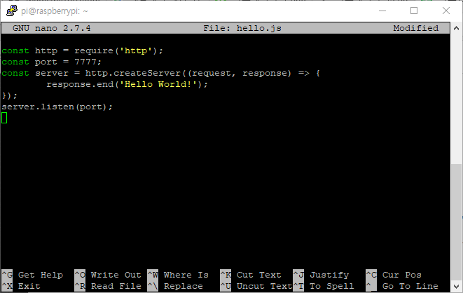sudo nano hello.js